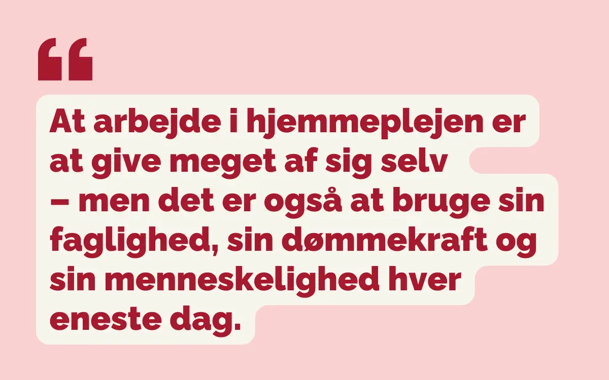 At arbejde i hjemmeplejen er at give meget af sig selv – men det er også at bruge sin faglighed, sin dømmekraft og sin menneskelighed hver eneste dag.