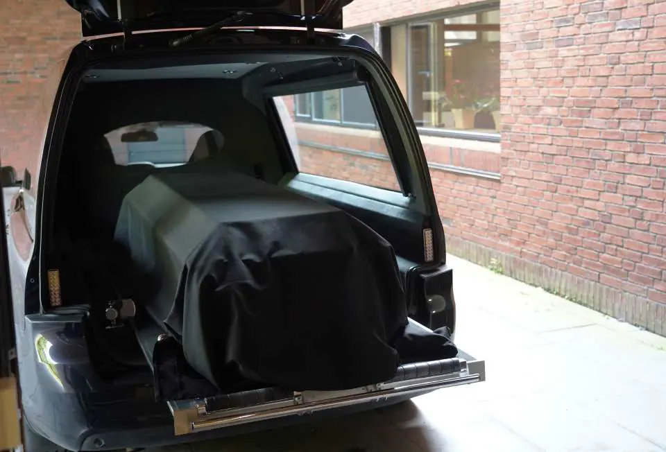 I rummet ved siden af foregår omlægningen, hvor folk, som er døde i udlandet, bliver lagt i en ny kiste.