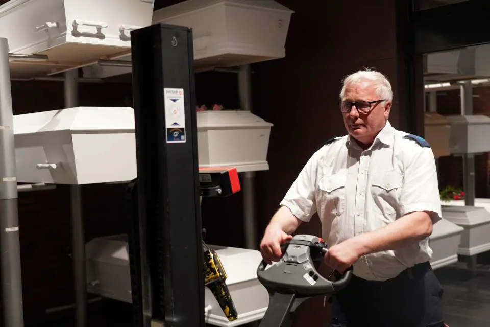 I dag hjælper han de pårørende med at sende deres kære til deres sidste hvilested.