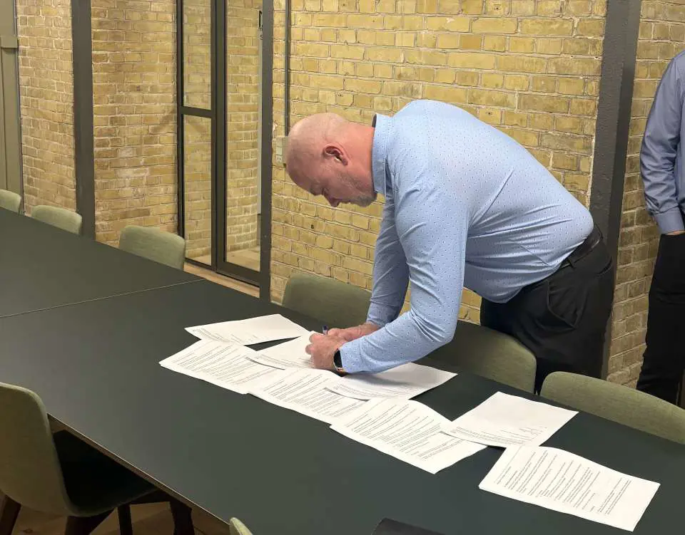 Milepælen blev nået, da forbundsformand Mona Striib satte sin underskrift på FOAs nye aftaler med Danske Regioner. Og hun var da også glad, da hun og regionernes forhandlingschef Ole Lund Jensen og gav håndslag på aftalen.